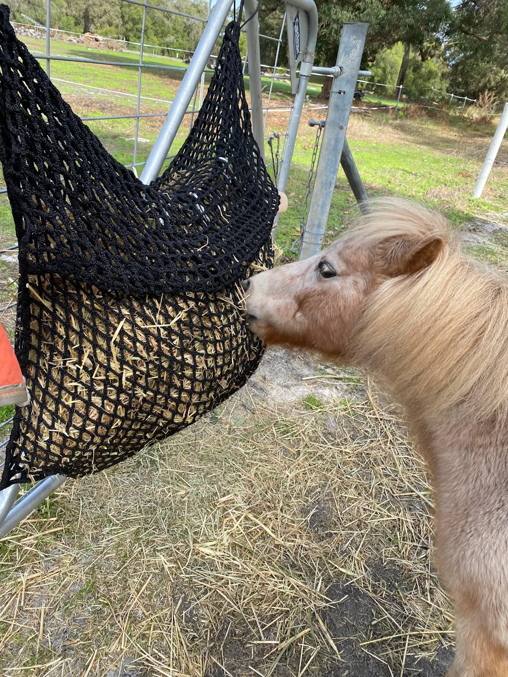 With hay available all the time, there is no insulin spike. Allows free choice/ low carbohydrate hay access all the time. Pasture hay is usually the best (but not ryegrass or clover hay).